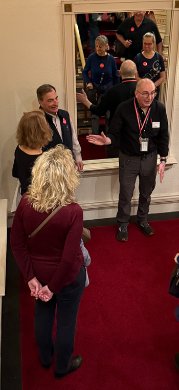 Purple-streaked gal (“PSG”) indicated the armrest next to Jim on our bench.  “Ma’am, can I sit here on the end?” PSG asked so softly and swiftly that her request melded into one utterance.