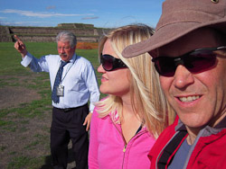 Finally at the pyramids, Edmundo delivered more lessons. He downplayed Aztec sacrifice, instead focusing on Indian numerology. Edmundo explained the mysterious power of the number four in Aztec culture. We learned equations like the square root of the sun divided by the full moon multiplied by four-year calendars subtracted by spendy trinket shops… always results in the magical number four! Four! Four! Four! Time after time, Edmundo held up four fingers in illustration, just like Sesame Street. Afterwards, FOUR became our quiet mantra and universal response.