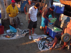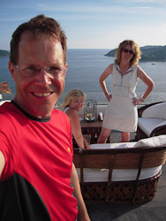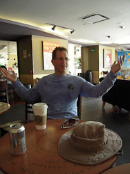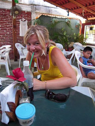 Fortunately our hotel room had powerful air-conditioning plus a hot-tub, or rather a cold-tub in our case. We found the place crunchy but immaculate, the locals hospitable and laid-back. We adapted quickly, lounging and eating incredible jumbo shrimp, fresh tropical fruit, and piles of guacamole. It was too hot to do much more. Yet Jim jogged through town each day, apparently making a name for himself--we can only guess what that was. His ordering of four-fingered hot coffee after a sweaty jog likely added to his fame.