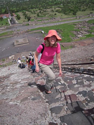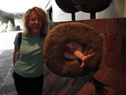 We hired Edmundo from the hotel to take us to the Teotihuacan pyramids north of the city. Edmundo apparently fancied himself a teacher of history. He drove and lectured simultaneously, using animated hand gestures. His distracted driving might have concerned us more if he hadn’t moved so ridiculously slow. The Four Seasons probably wouldn’t have approved of Edmundo’s detour to the Aztec trinket shop either, where he surely got some type of kick-back. “I’m taking you there because they have a nice ladies’ room,” he claimed.