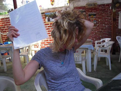 Already a maze of paperwork, Mexico City’s airport added a new station for Swine Flu screening. We surveyed the Spanish survey. Did we suffer coughs, fevers, aches, or other words I never learned in Spanish class? We knew enough Spanish to mark NO, NO, NO! We walked through heat sensors for fever detection. Jim and I scanned white, but Annie’s airport anxiety pumped her yellow.. Fortunately nobody stopped her. Who knows where they would have taken Annie, or what they would have done with her? We were happy not to learn.