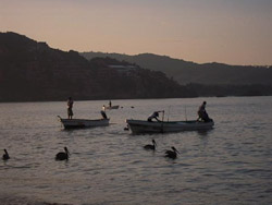 Jim and Annie resolved to swim with the dolphins in Ixtapa, a town filled mainly with vacationing Mexican families. School had just released; Swine Flu closures had postponed summer vacation three weeks. We experienced our worst price-gouging at the dolphin pool. First, they post no pricing. They quote Americans FOUR times the cost in dollars to obscure their peso rate for Mexicans. When we asked for peso pricing, they stopped to think--it takes a minute to convert those inflated dollar amounts. They prohibit personal photography, charging $8 per photo and $80 per video. I obeyed the rules, but most Mexicans ignored them, even with their discounted rates. Jim and Annie loved the dolphins, but we left without a single photo. We gladly returned to Zihuatanejo that evening.