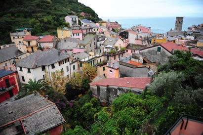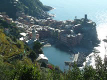 Forty minutes ago I sent Jim, his camera, and specific travel instructions south on the milk-run train. They’re all going to the next town of Vernazza for some twilight photos of that picture-postcard place. On our vacations, Jim takes photos and pays for stuff; I manage almost everything else. Having Jim go solo on a train is no small feat. I hope I see him again.