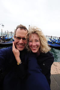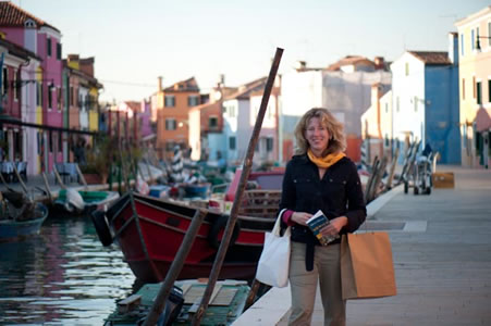 I’m resting in our room at a small, modest, privately owned hotel, once part of a 16th century palace, about a ten-minute walk from the Rialto Bridge. Through our double window, I see peeling stucco, a bricked-in window, high cement walls, and twisted ironwork. Inside, the sage green décor screams Italianate, complete with canopied bed, a gaudy chandelier, a huge armoire with painted cherubs, 15-feet ceilings, padded wallpaper and a false window with drapery covering. (The fake window made me scream. I’d pulled back the drapes, exposing a mirror with a tall, blonde, cannoli-eating American staring back.) At home, all this would be at best, Disneyland tacky or at worst, ghetto scary. Here, it’s real, and utterly charming.