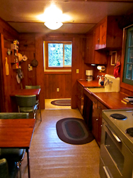 Back inside the cabin, Grandma’s sunhat dangles by the rear door, ready for an afternoon of huckleberry picking.  In the kitchen, her cookbooks and crockery fill Grandpa’s cabinetry.  Her spice rack hangs on the wall.  Her apron, tucked in a drawer.