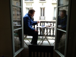 There is quite a bit of space and light everywhere with tons of windows--light abounds for us in this City of Light. A shallow terrace wraps about the entire apartment. The place is scrupulously clean. Jim says it reminds him of the Ester Lee Motel in Lincoln City--it’s warm, cozy, friendly, tidy, atmospheric, in a great location, light-filled, quirky and a good value. Both places have a story and sense of history. We feel immediately at home here.