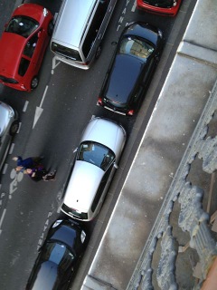 This morning, Jim stood in front of our apartment waiting for Annie’s airport cab to arrive. Annie’s driver spoke no English but he understood when she pointed out Jim on the sidewalk and cried, “Mi Papa!” From our balcony, I snapped a photo of Jim and Annie in the street as the cab drove away.