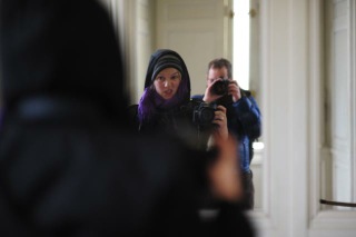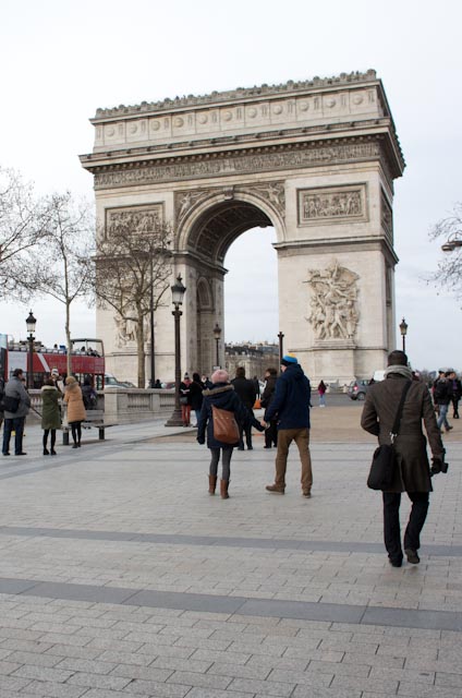 We bundle for the cold and decide we look more Parisian for it. The absence of our baseball caps (Jim), enormous cameras (Jim) and open guide books (me) don’t hurt. We see no tourists around and get addressed in French ourselves until they hear our accents.