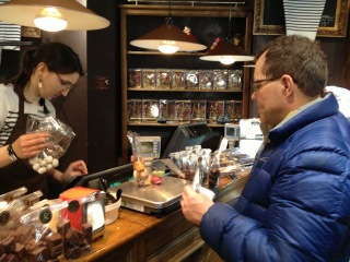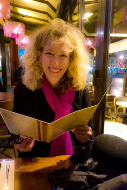 The famous Shakespeare and Company bookstore offers a retreat for warming icy hands amongst a hive of English-speakers. We are freezing. Back at our Sorbonne neighborhood, we step inside a restaurant recommended by Peter. I translate the specials on the chalkboard. ‘No’ to the one with the word ‘rabbit’ in it. Go with veggie and French onion soups and tiramisu instead, I decide. Jim is always more than happy to let me take the reigns at any foreign restaurant, even Mexican food back home, and I do well for us this time; I can’t remember enjoying hot soup more.