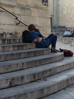 We’d walked a few yards upstream to a safe distance from the action, but still close enough to observe. Annie and I doubted these women had any weapons beyond their fighting words and fists (we are in Paris, not New York.) Fellow English-speakers heard us and asked what had happened. Annie was happy to offer a report.
