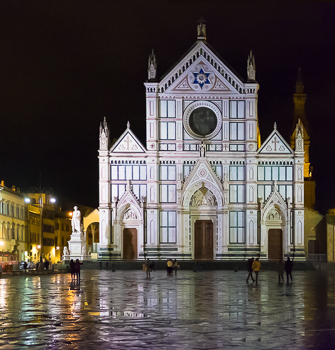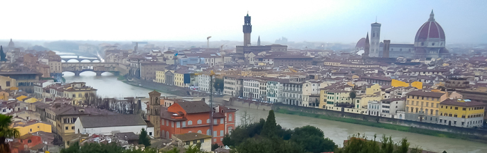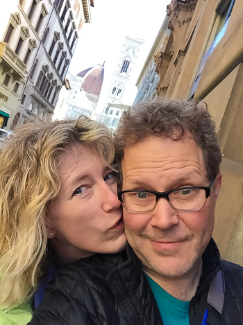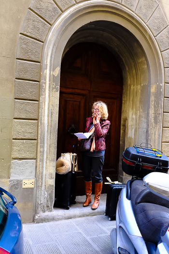 We rent an apartment in the Santa Croce neighborhood, the very streets where Michelangelo lived and worshipped. We arrive a few minutes early so Jim suggests I phone Giovanni, our amiable young apartment manager, who chats while driving his Vespa in the pouring rain.