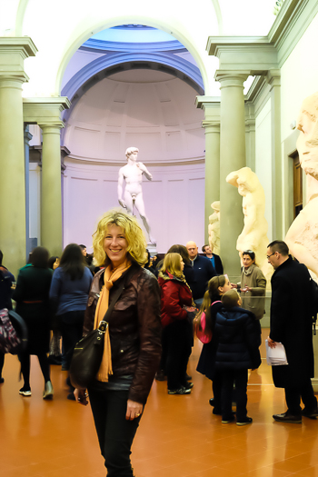 David charms even more in less noise. We stand and stare up at him from different angles. I’d never before noticed the space between his fingers, or gazed up into the man’s nostrils. David looks less confident from his right side. We examine tendons in his hands and the muscle definition on the back of his left leg. Jim and I comment on the genius of Michelangelo, just 26 years old when he carved this stone masterpiece. David never grows old.