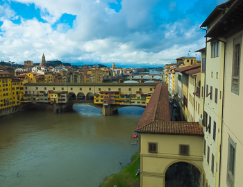 In anticipation of Hitler’s visit in 1938, Mussolini mutilated the Vasari Corridor by punching out several large windows over the river. Florentians decided not to restore the windows after the war because they consider the changes part of the corridor’s history. Plus they like the improved light and view.