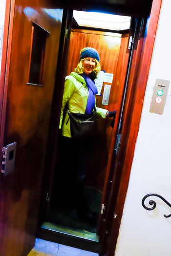 After Giovanni leaves, we tackle the scariest task right off the bat: operating the elf-sized elevator. We lift heavenward, but upon reaching our floor, I can’t unclasp the door. I tug repeatedly, our single set of apartment keys dangling perilously over the narrow gap of the elevator shaft. We carry no cell phone. Jim seizes the keys and pushes the elevator button to another floor where he eventually resolves the latch. For the next eight days, we stick with stairs.