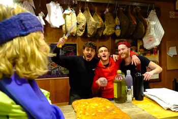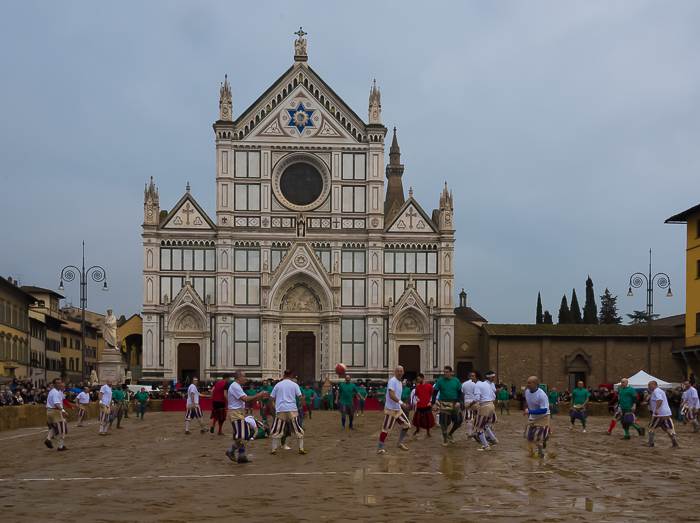 Barricades of hay bales line the edges of our Santa Croce Piazza. A thin layer of sand covers the ground and small circus-like tents stand at each end. We ask the ticket-taker what’s happening.