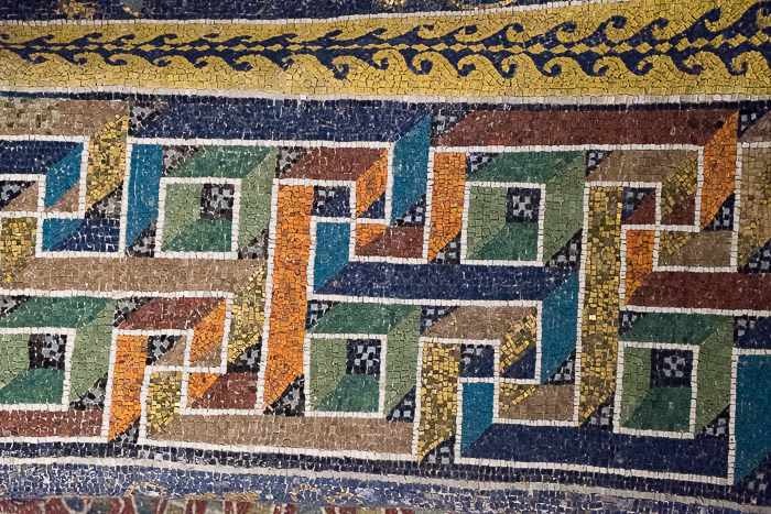 Brighter than we expected, full of color and life, the mosaics look like they might have been installed yesterday. The modern appearance of some of the designs surprised us, particularly those in Basilica San Vitale; the geographic shapes reminded us of the border of the little oriental rug we inherited in 1985 from our Aunt Katherine (a scholar still legendary in my family for her fastidiousness).
