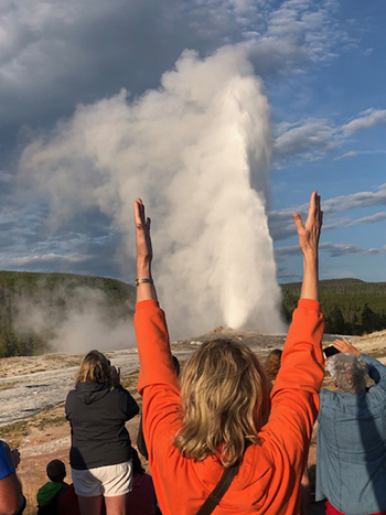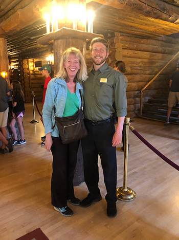 I recognized Ranger Joanne as the Old Faithful Inn tour guide from our last visit in 2003. Following that tour 16 years ago, I’d told her about my grandparents. She’d asked me to send her our family’s old Yellowstone photos and stories for park historical records, which I did, as we briefly corresponded that summer.