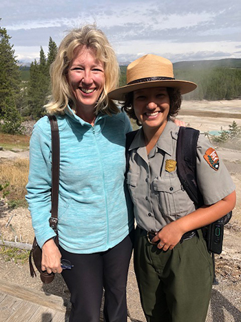 I agreed to come back to Yellowstone because it’s a fun way to remember my grandparents who worked and met here 100 years ago for their summer jobs, Grandpa driving tour buses and Grandma cleaning rooms at Old Faithful Inn. And because I can’t get enough of some of my favorite folks in the world: Park Rangers.