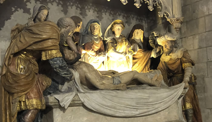 In the next room, I encountered a staff worker crouched on the floor, tackling her first red tape strip with limited success. Afterwards we visited Amboise’s Saint Dennis church, built in 1107. A woman welcomed us warmly before returning to her task of scraping moss and debris from the front steps.