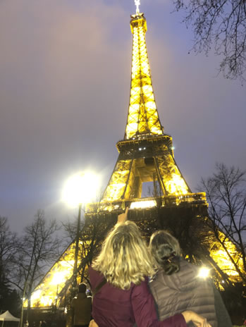 We hired an Uber to The American Church, a place I’d been curious about for years. What a delight to meet Janice and Al there, or as Janice said, “This is surreal!” Al had a dinner event before his talk but suggested Janice join Jim and me for a stroll to the nearby Eiffel Tower. The tower twinkled on the hour as we approached, sprinkling even more magic on this providential rendezvous in Paris with my dear childhood friend.
