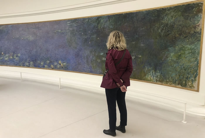 At the Petite Palace, I held open a large glass door for an older woman with a cane. She asked me in French if I knew where the special exhibit was. I used up all my best French phrases at once by saying “I don’t know. I’m sorry, but I don’t speak French.”