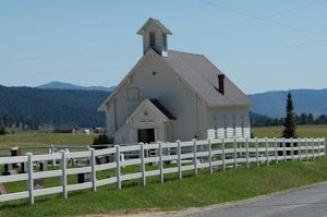 Annie in Roseberry; Roseberry Finnish Church; Payette Lake from dock